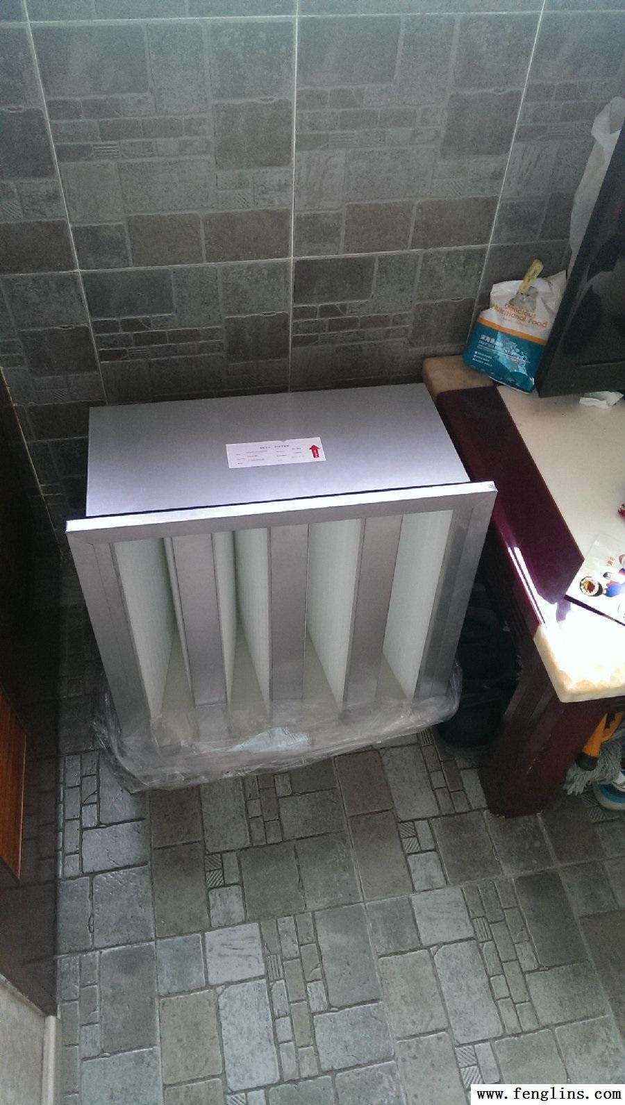 實際上 行業(yè)中 有大量的V形的高效過濾器 比I形的 進氣面積更大 很容易找到了現(xiàn)成的產(chǎn)品 VVVV形的高效過濾器 可惜 這個東西不是為FFU生產(chǎn)的 規(guī)格不一樣 是595*595的 比FFU大了 裝不上 沒法子 只有再次去欺騙工業(yè)領(lǐng)域的朋友 再次謊稱我有大量的需求 但是需要樣品檢測 如愿用500的價格 定制到了575*575規(guī)格能套在FFU上的VVVV形高效過濾器