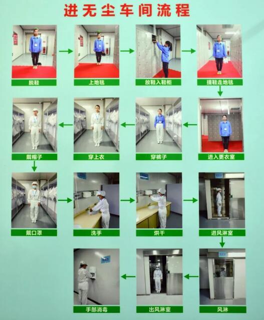 進入無塵車間的整個流程就掛在更衣室的入口處