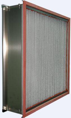 耐高溫高效過(guò)濾器依然是有隔板結(jié)構(gòu),使用耐高溫玻纖或超細(xì)玻璃纖維濾紙,鋁箔隔板,不銹鋼外框,特制耐高溫密封膠密封裝配而成,每臺(tái)均經(jīng)嚴(yán)格測(cè)試。效率可達(dá)F9-H14.主要用于生產(chǎn)環(huán)節(jié)要求烘干的超潔凈烘箱或要求高溫空氣凈化設(shè)備和系統(tǒng)。最高工作溫度可達(dá)400度。